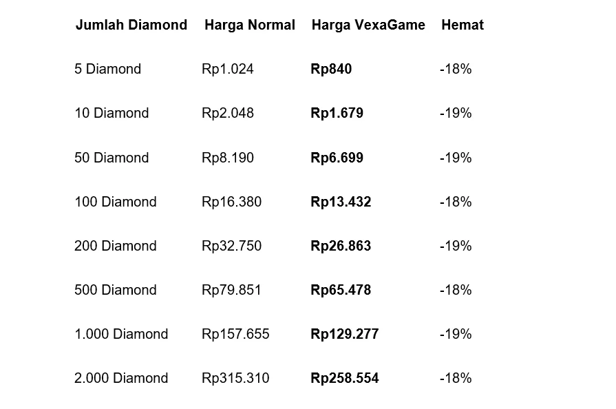Kenapa worth it: Diamond paling rendah di list ini, tapi impact visual-nya signifikan.